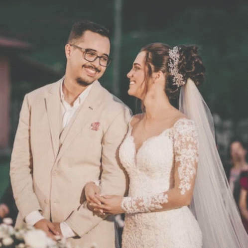 Paglalarawan ng Content: a bride and groom are looking at each other during their wedding ceremony