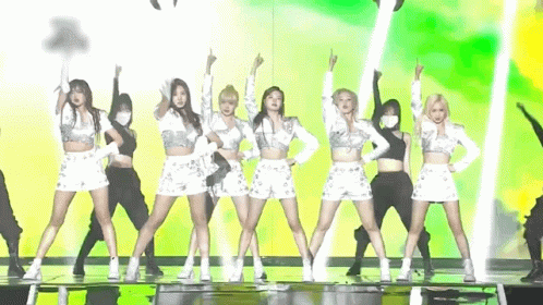 Paglalarawan ng Content: a group of young women are dancing on a stage while wearing face masks .