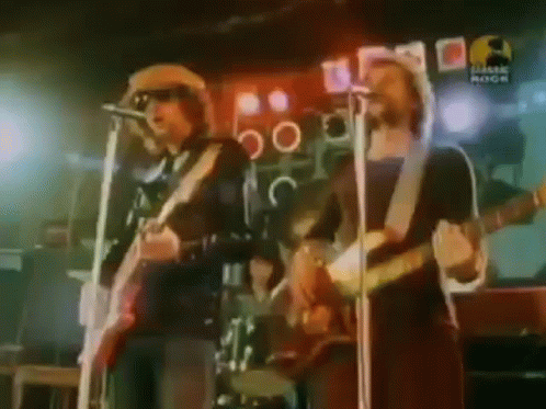 Paglalarawan ng Content: two men are playing guitars and singing into microphones on stage .