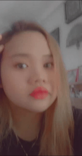 Paglalarawan ng Content: a close up of a woman 's face with red lipstick on