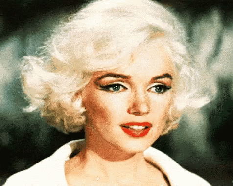 Paglalarawan ng Content: a close up of a woman 's face with blonde hair and red lipstick