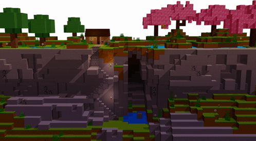 Paglalarawan ng Content: a 3d rendering of a minecraft world with trees and a cave