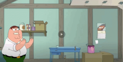 Paglalarawan ng Content: a cartoon of peter griffin in a room with a play button