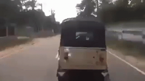 Paglalarawan ng Content: a car is driving down a road with trees on the side of it