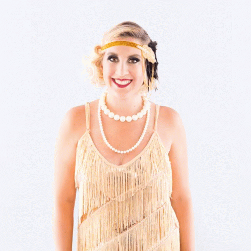 Paglalarawan ng Content: a woman wearing a pearl necklace and a gold headband makes a funny face