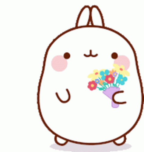 Paglalarawan ng Content: a cartoon rabbit is holding a bouquet of flowers in front of its face .