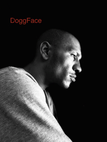 Paglalarawan ng Content: a black and white photo of a man with the words doggface on the top