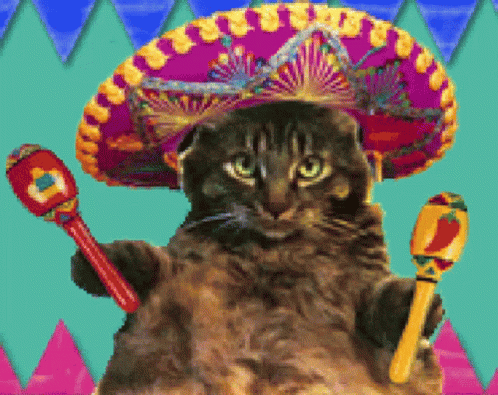 Paglalarawan ng Content: a cat wearing a sombrero is holding a maraca