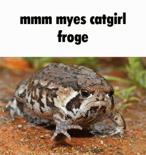 Paglalarawan ng Content: a frog with a caption that says ' mmmm myes catgirl froge '