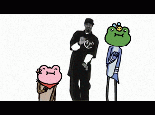 Paglalarawan ng Content: a cartoon of a man standing next to a frog and a raccoon