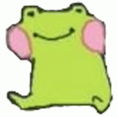Paglalarawan ng Content: a green frog with pink ears is smiling and sitting down .