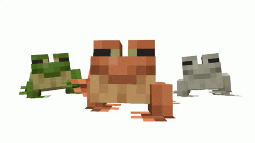 Paglalarawan ng Content: three frogs are standing next to each other in a minecraft game