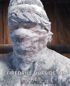 Paglalarawan ng Content: a man is covered in snow and says firedrill outside be like ..