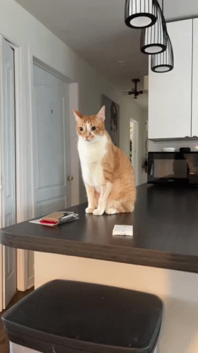 Paglalarawan ng Content: an orange and white cat sitting on a counter top