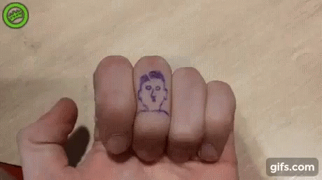 Paglalarawan ng Content: a person is drawing a picture of hitler on their fingers .