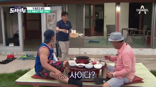 Paglalarawan ng Content: a group of men are sitting around a table with a sign that says channel a above them