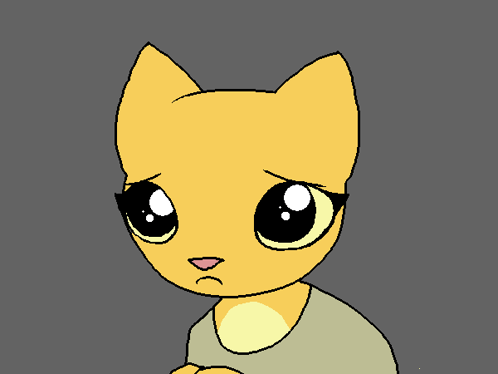 Paglalarawan ng Content: a drawing of a yellow cat with a sad look on its face