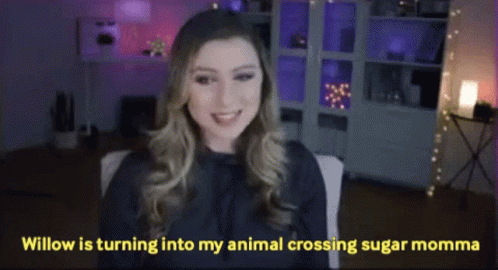 Paglalarawan ng Content: a woman says willow is turning into my animal crossing sugar momma in yellow letters