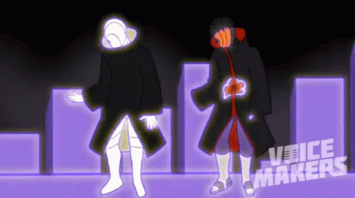 Paglalarawan ng Content: a cartoon of a man standing next to another man in a purple room .