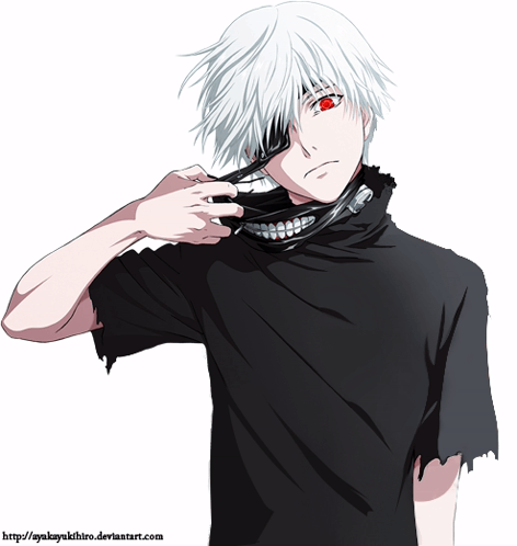 Paglalarawan ng Content: a man with white hair and red eyes is wearing a mask
