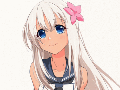 Paglalarawan ng Content: a girl with long white hair has a pink flower on her head