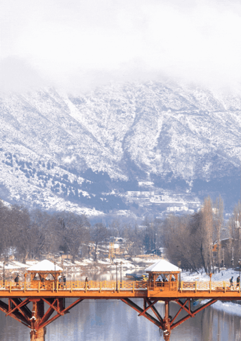 Paglalarawan ng Content: a bridge over a river with mountains in the background