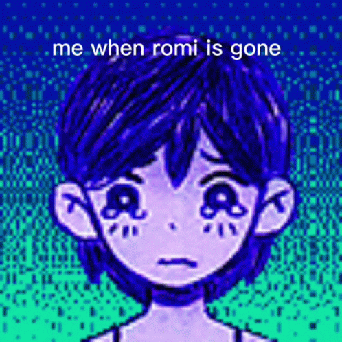 Paglalarawan ng Content: a pixel art drawing of a girl with the words me when romi is gone below her
