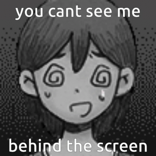 Paglalarawan ng Content: a black and white drawing of a girl with a swirl around her face and the words you cant see me behind the screen