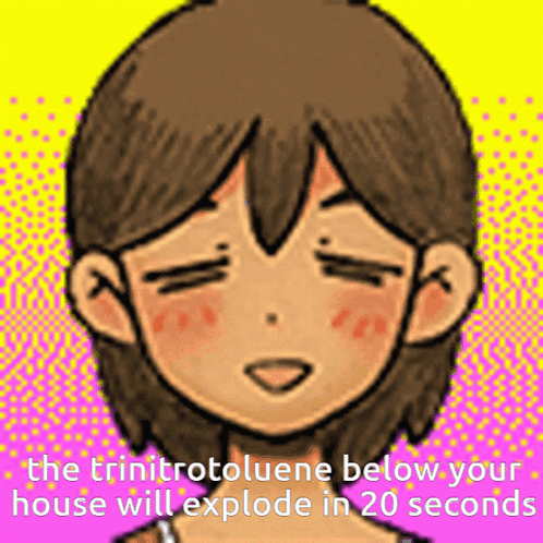 - Paglalarawan ng Content: a cartoon of a girl with the words " the trinitotoluene below your house will explode in 20 seconds " below her