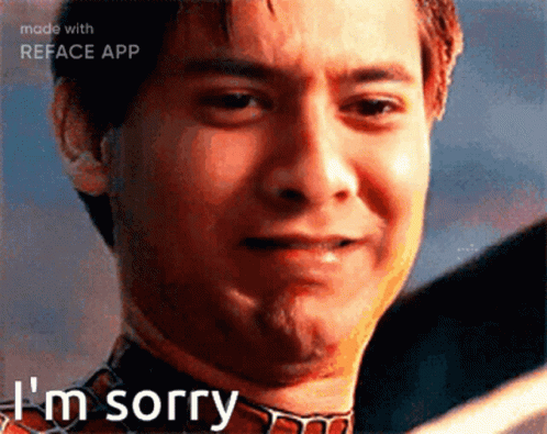 Paglalarawan ng Content: a close up of a man 's face with the words " i 'm sorry " below it