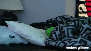 Paglalarawan ng Content: a bed with pillows and a blanket that says make a gif on the bottom