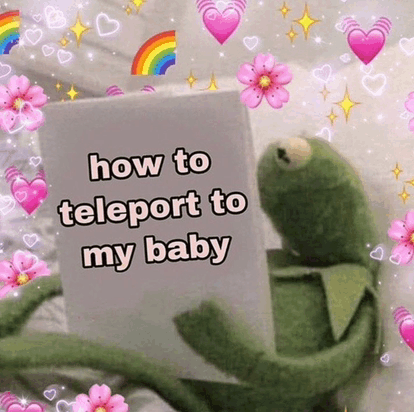 Paglalarawan ng Content: a kermit frog is holding a sign that says how to teleport to my baby