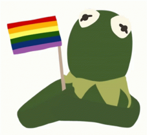 Paglalarawan ng Content: kermit the frog holds a rainbow flag in his hand