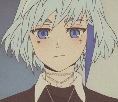Paglalarawan ng Content: a girl with white hair and blue eyes has a cross on her forehead
