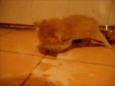 Paglalarawan ng Content: a cat eating from a bowl on the floor