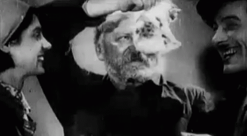 Paglalarawan ng Content: a man with a beard and mustache is being shaved by two women .