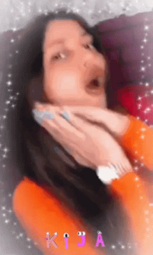 Paglalarawan ng Content: a woman with a surprised look on her face is surrounded by glitter and the name kija