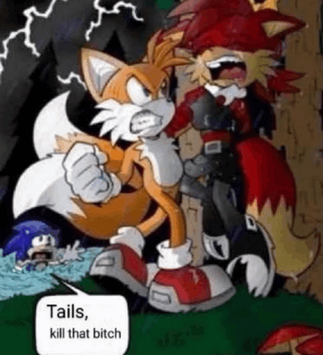 Paglalarawan ng Content: tails and shadow from sonic the hedgehog are fighting each other in a forest .