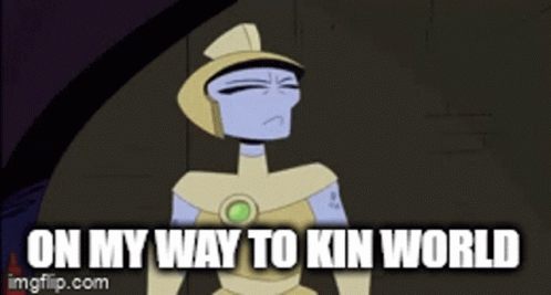 Paglalarawan ng Content: a cartoon character with the words on my way to kin world written on the bottom