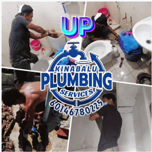Paglalarawan ng Content: a sign for kinabalu plumbing services shows a collage of photos