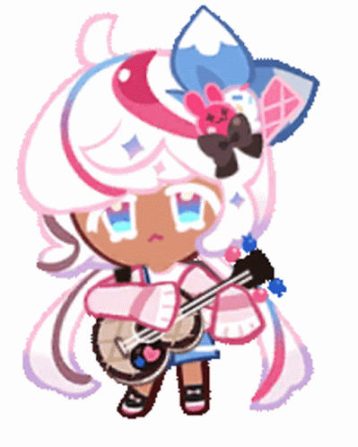 Paglalarawan ng Content: a cookie run character is holding a banjo and a painting .