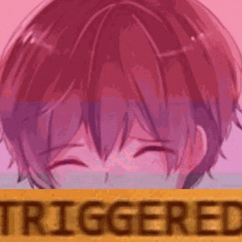 Paglalarawan ng Content: a close up of a person 's face with a sign that says `` triggered '' .