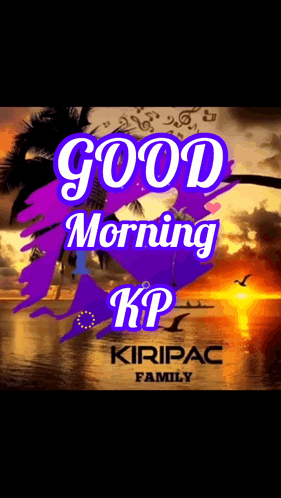 Paglalarawan ng Content: a poster that says good morning kp kiripac family with a sunset in the background