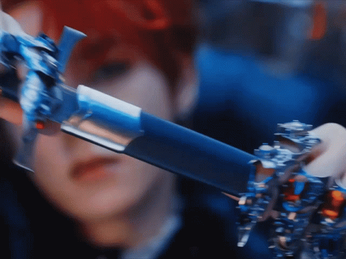 Paglalarawan ng Content: a close up of a person holding a blue and silver sword