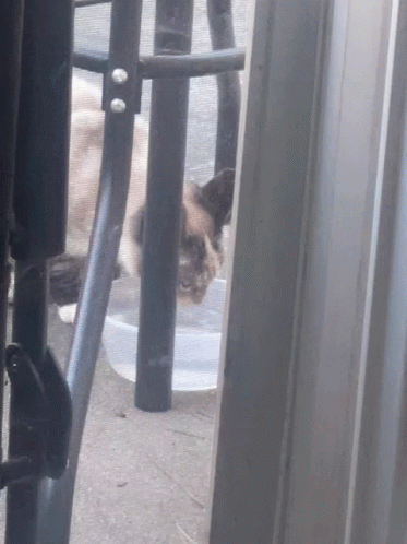 Paglalarawan ng Content: a cat is drinking water from a plastic container under a chair