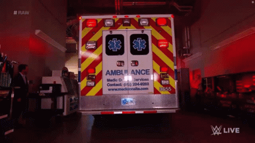 Paglalarawan ng Content: an ambulance is parked in a dark room with a man in a suit standing next to it
