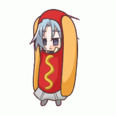 Paglalarawan ng Content: a cartoon of a girl dressed as a hot dog with mustard