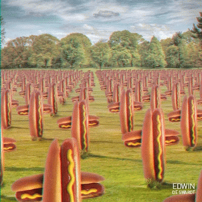 Paglalarawan ng Content: a bunch of hot dogs in a field with edwin de swarot written on the bottom