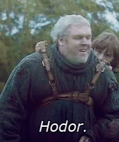 Paglalarawan ng Content: a man with a beard is carrying a child on his back and the word hodor is on the screen .