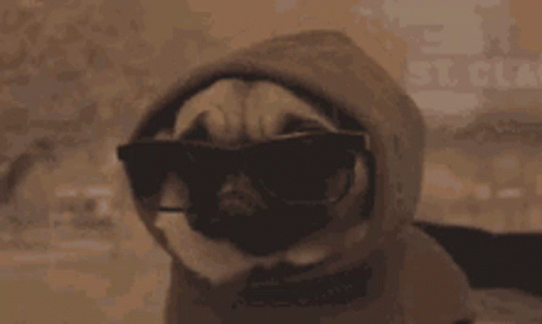 Paglalarawan ng Content: a dog wearing a hoodie and sunglasses looks like a ninja